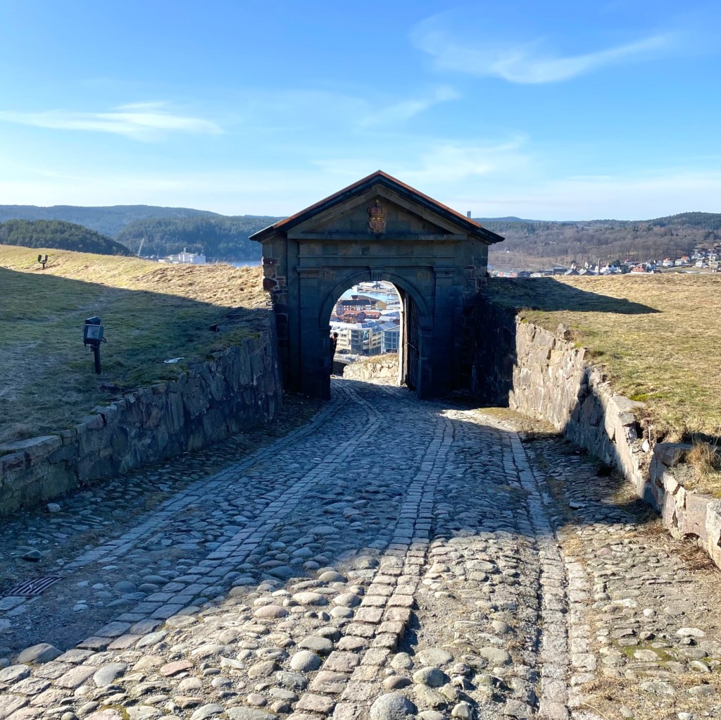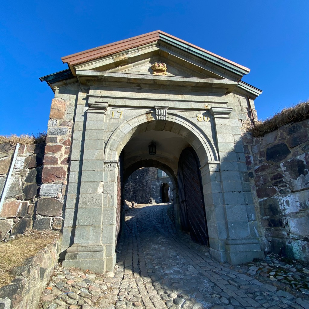 Nedre tenaljeport.Tenalje (fr. tenaille (knipetang)) Betegner opprinnelig en innspringende vinkel i et forsvarsverk, en «knipetang». Foto: Tom Thowsen 2021