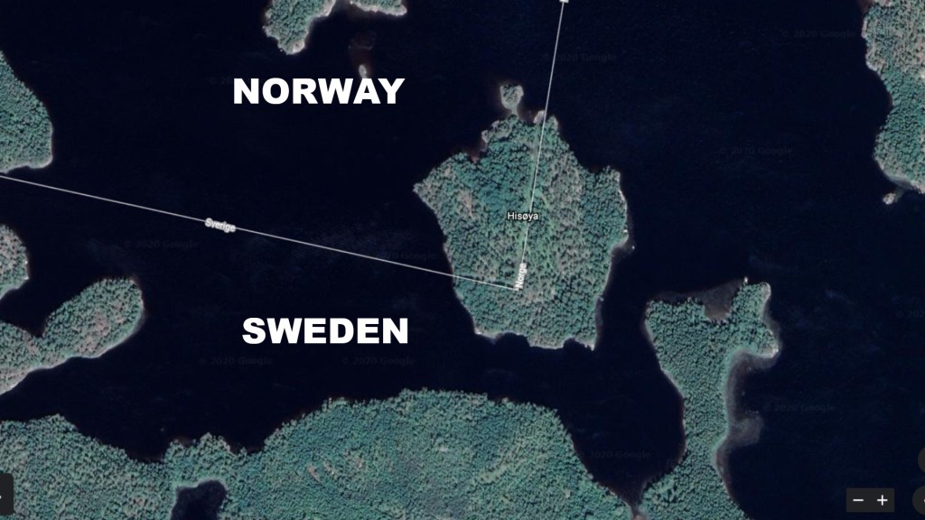 To make borders is a troublesome business—no wonder why they look so strange. Danes, Norwegians, and Swedes have argued about them for centuries. They have fought numerous wars and have been moving them back and forth and back again. Somewhere it follows a creek, and otherwhere it follows unexpected turns.