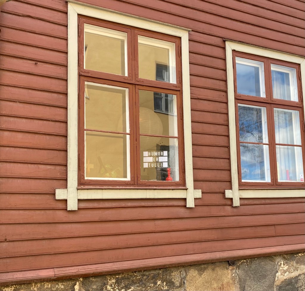 I do not know precisely what the person meant by this sign. Maybe not to take things too seriously. Humour is nonsense, it says.